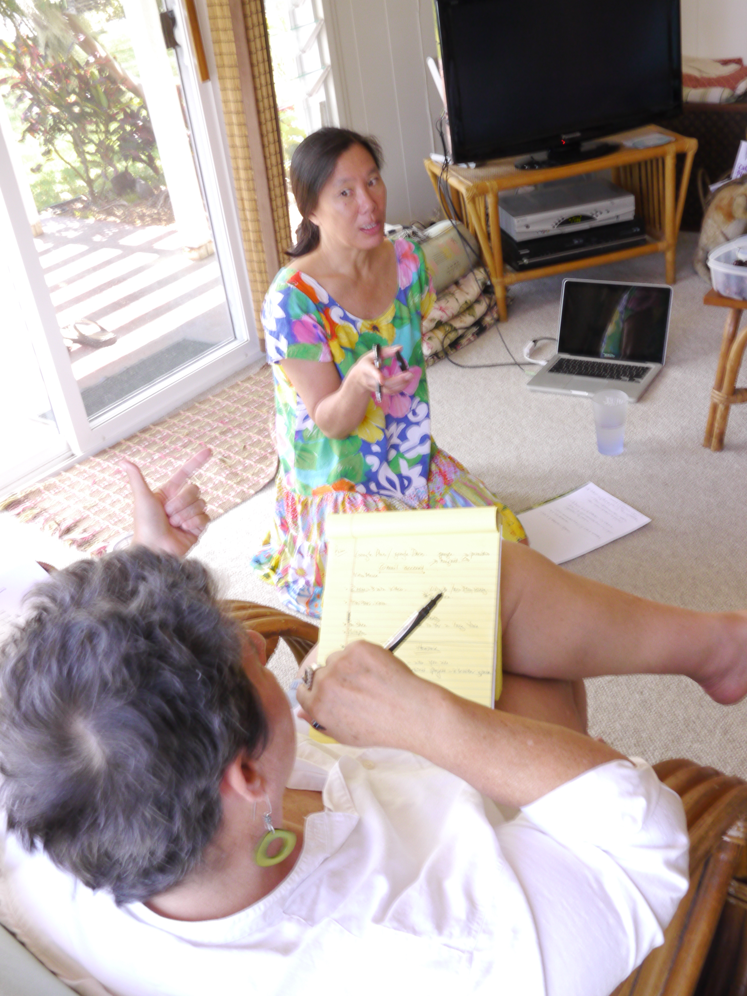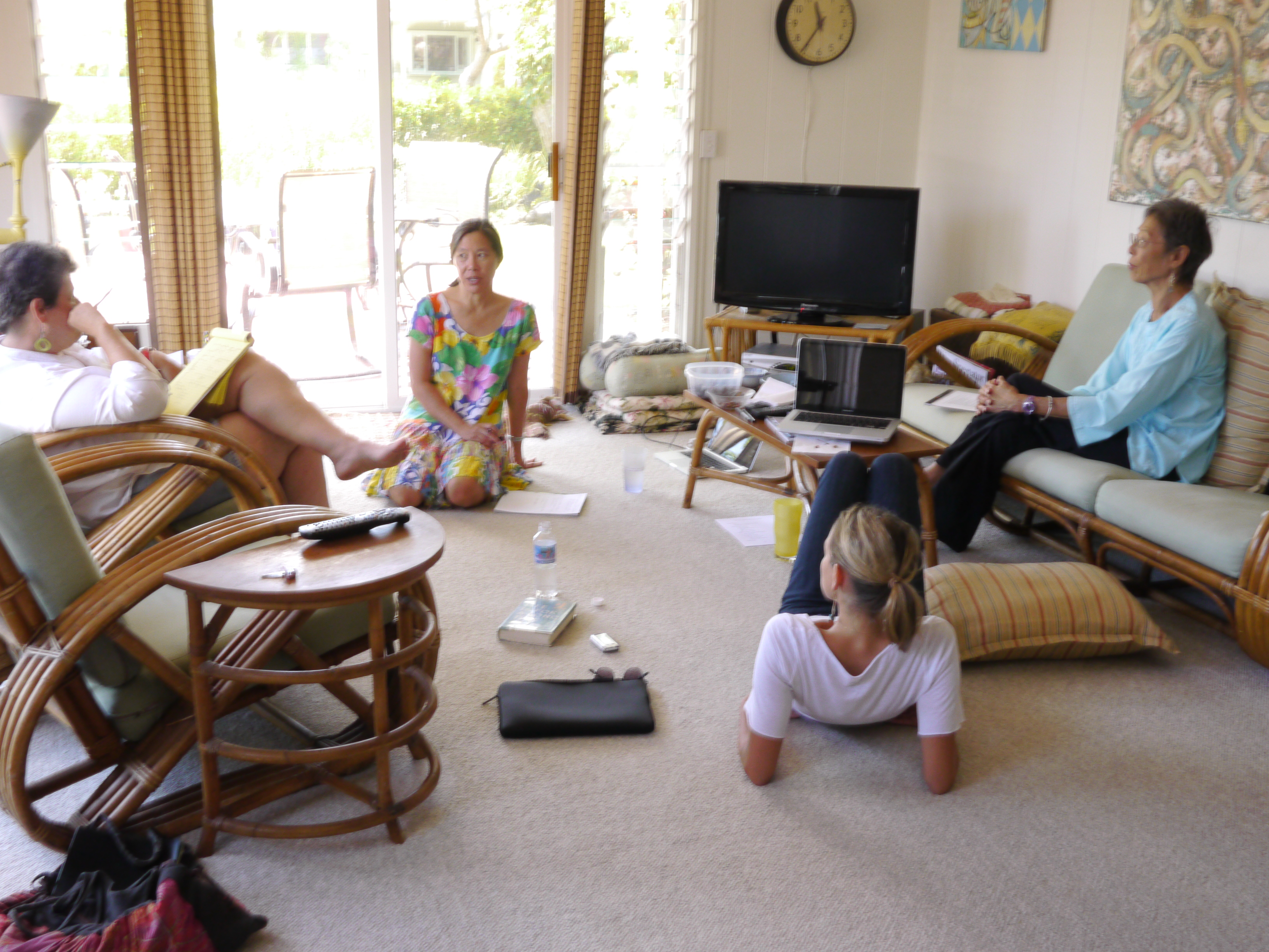 Robin Lung, Pamela Tong, Magnolia Barrett and Debra Zeleznik hold brainstorming session for FINDING KUKAN.