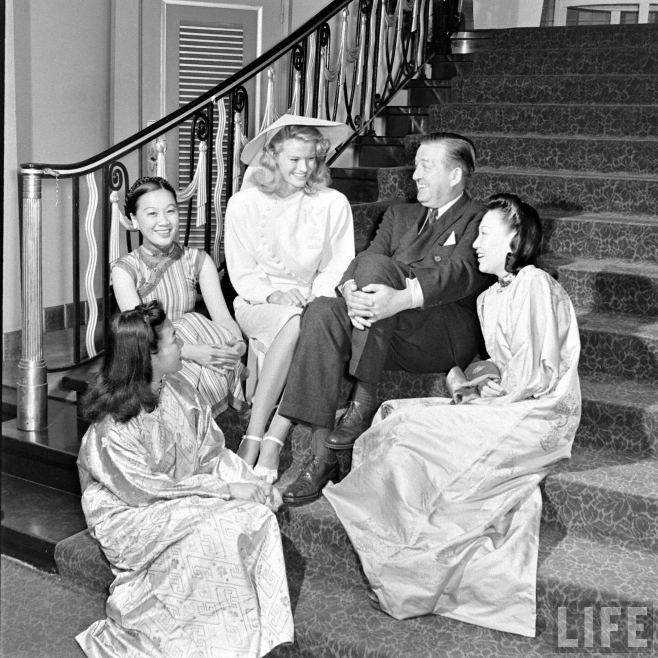 Li Ling-Ai, with actress K.T. Stevens, James Blaine, Lee Ya Ching, and unidentified Chinese woman