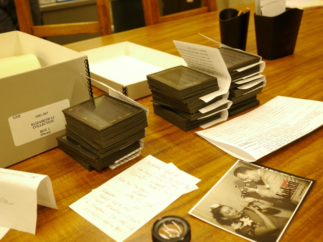 DeSoto Brown, curator at the Bishop Museum, also read Mike’s article and something clicked. He remembered a donation of lantern slides made to the museum by Betty Li, Li Ling-Ai’s older physician sister, back in the 80’s. In fact the slides were marked as being related to KUKAN! Early in my research I had read that KUKAN’s director Rey Scott lectured with a group of slides, but no one in his family remembered seeing them or hearing anything about them. I had given up on finding them.